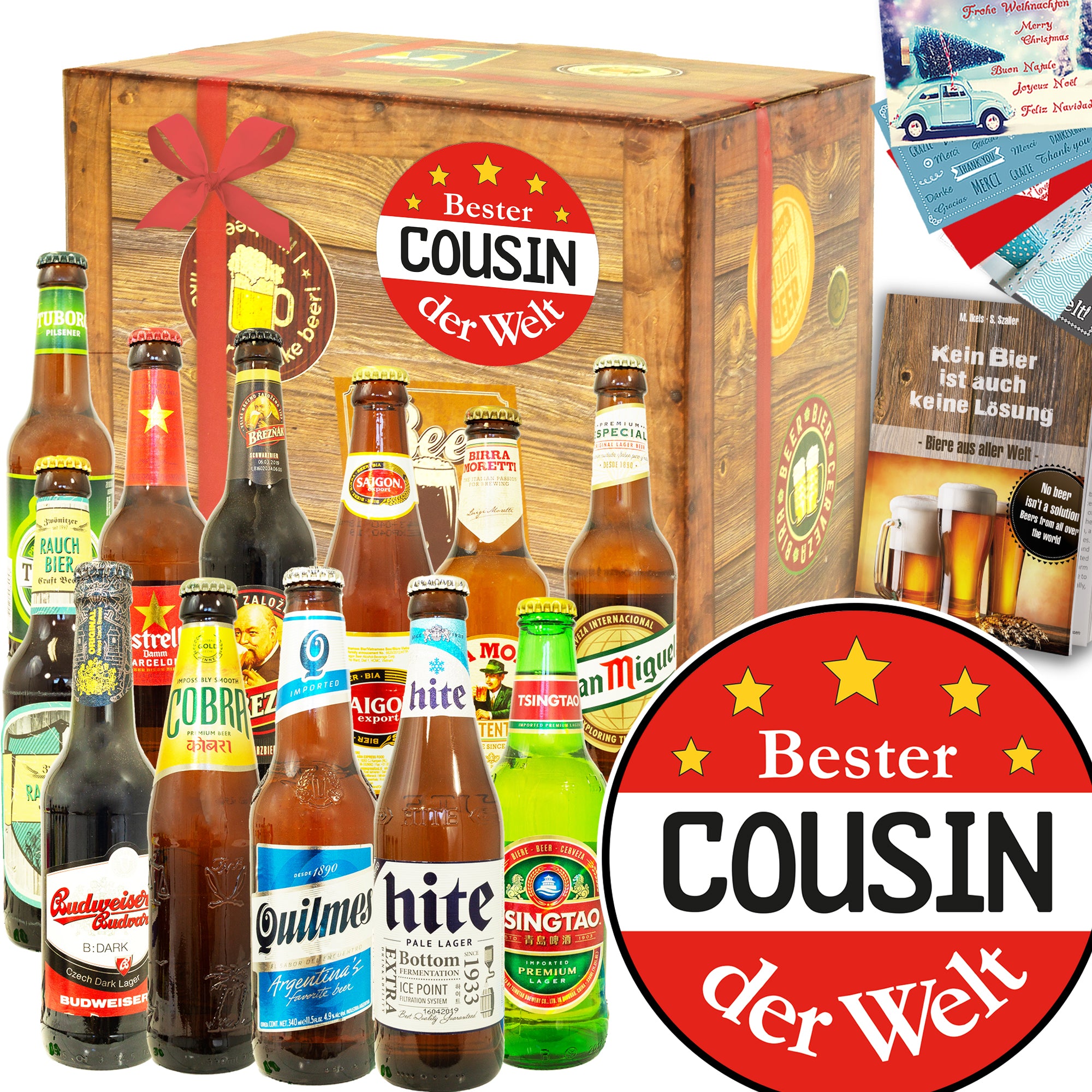 Bester Cousin | 12 Biersorten Bier aus aller Welt | Geschenk Box